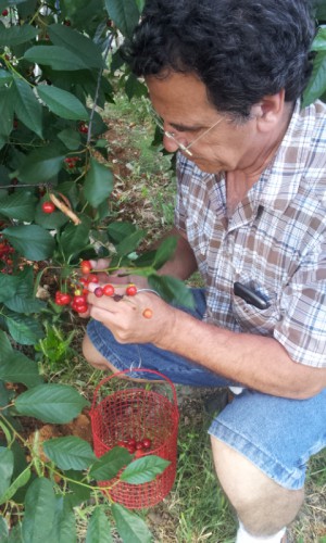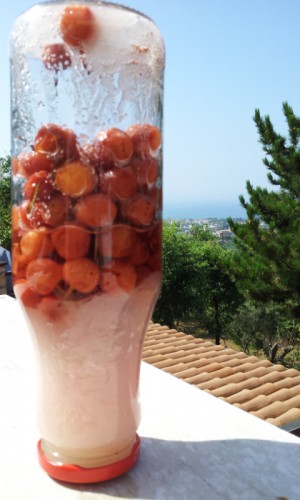 These cherries are known as ‘amarena’ and are not quite as sweet as the everyday cherry or ‘ciliegio’. So once Enzo had helped pick a pile from the tree, Dominico, his wife, Antonio and his wife, all started to give us a list of ways to deal with them. I’m not quite used to the dialect spoken by Dominico, his wife, Antonio and his wife just yet, so Enzo was left to take in all the information. Some 2 hours later in the car, and Enzo has to phone Antonio’s wife at least twice to be reminded of what to do.