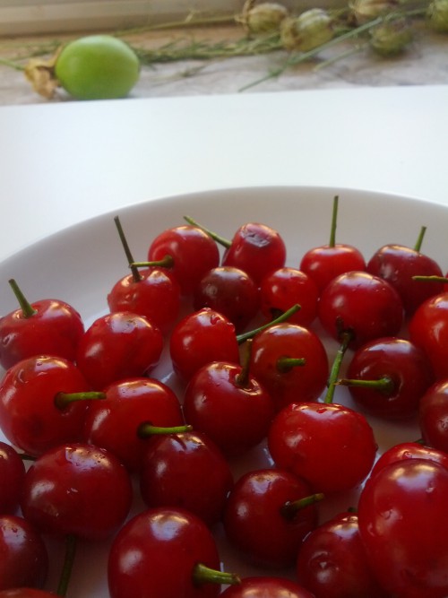 As you can imagine, there are a lot of busy kitchens around Italy during the harvesting seasons. So it should have come as no surprise, as we gathered a few jars of this and that to deliver to family members, that we too should come away from our visit, with a basket of these lovely cherries.